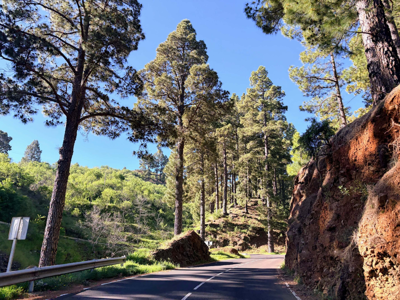 Все починалось ось так. До речі - це класична дорога на Ла Пальмі - сосни, тиша і майже нікого навколо.